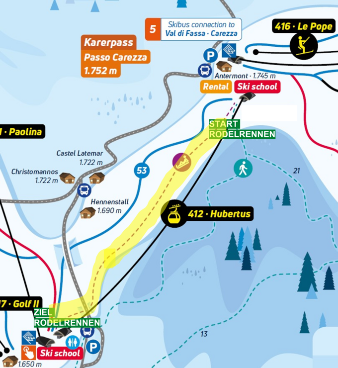 Zugelassen sind - wie in den letzten Jahren auch - Rodeln bis zu einem Maximalgewicht von 10 kg. Die Rodeln müssen Metallschienen mit 90° Kante haben, die nicht hinterschliffen sind.