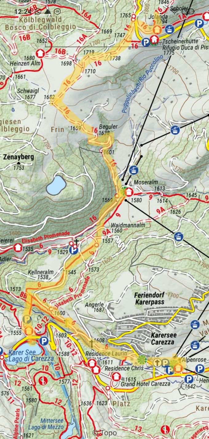 Einkehrmöglichkeiten: Gasthof „Lake and River“, Snackbar am Parkplatz Karersee, Moseralm, Gasthaus Jolanda.
