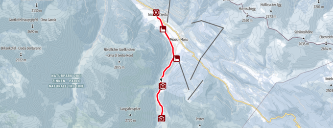 - Route: Sexten – Moos – Bad Moos – Fischleinboden - Talschlusshütte